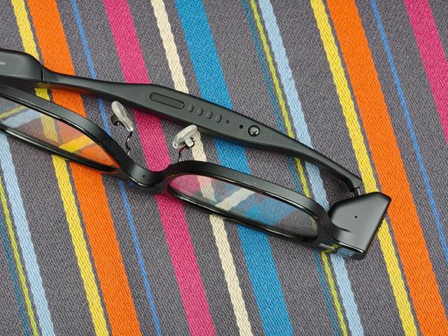 关键的是这些全部集中在右镜腿上,就难免显得有些局促。尤其是底部的媒体操控区和电源键都在镜腿中部,不仅需要摸索才能找到,戴着眼镜的状态下,也很容易找电源键误触底部媒体操控区,导致音量的变化。