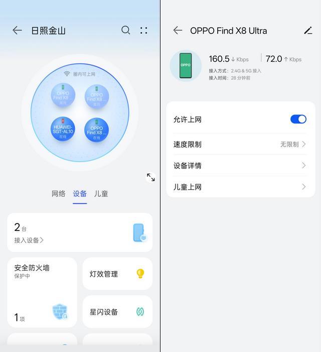 而在网络安全和可控性上,华为日照金山X3 Pro路由器也做得非常通俗易懂,通过智慧生活App,你可以看到每一台接入设备的在线状态、耗费流量和信号质量,遇到陌生设备接入可以一键拉黑。