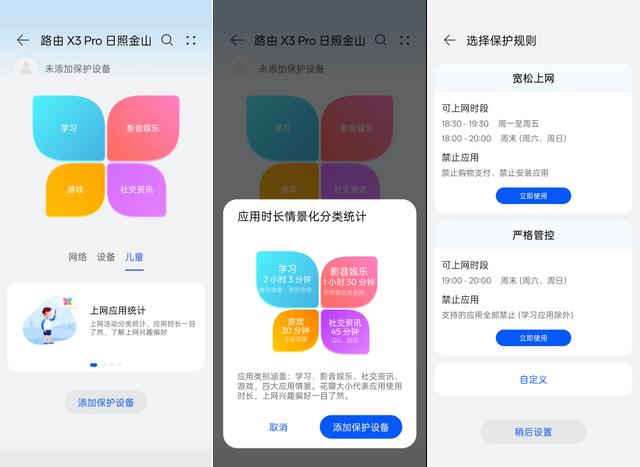 再比如自带的儿童上网保护也非常实用,你可以在 App 里限制某些设备的上网时段,过滤高风险网站,对游戏、短视频、社交、支付类应用进行精细限额,让孩子在特定时间内只能访问学习相关内容。让孩子该写作业的时候自动限速或断网,该休息的时候自动断开Wi-Fi。