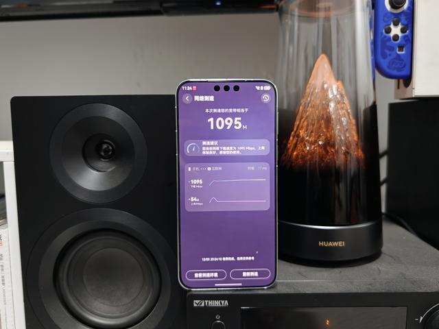 那么华为日照金山 X3 Pro 路由器的体验如何呢?先说最简单的客厅场景,在路由器放在客厅电视柜、光猫旁的标准摆位下,靠近机身一两米内测速,下载基本可以稳定在 1000Mbps 左右,上行 80~100Mbps,时延在 10ms 左右,几乎把这条带宽全部吃满。