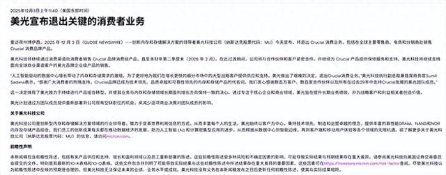 如果不是看到美光的官方公告,小雷很难想象这个在消费者存储领域存在了快30年的品牌,会在存储产品价格全线暴涨的节点突然离开。