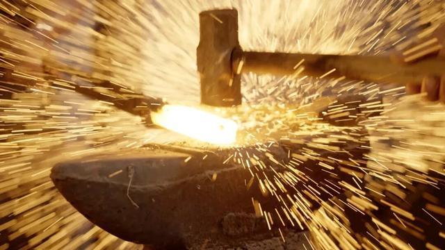 千锤百炼始成钢,通过将含碳量不同的钢材反复折叠锻打,细化晶体,才能形成宝剑致密的结构与天然的花纹。