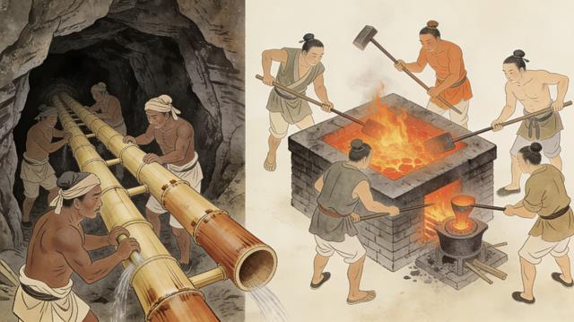 采矿和冶金技术也值得一说。煤矿开采时,他们首创竹管通风技术,有效防止瓦斯爆炸,保障了矿工安全。冶金领域发明了灌钢法,把生铁和熟铁混合冶炼,造出的兵器又锋利又耐用,远超传统铁器。