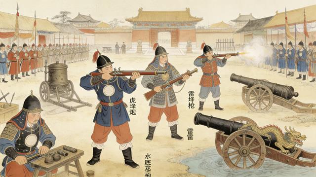 明朝的军工体系,那可是古代版的“军事工业化”。朝廷专门设立了兵仗局、军器局,负责大规模生产火器。神机营作为当时世界上最先进的火器部队,装备了上万杆火铳。他们的技术亮点可不少:比如虎蹲炮,轻便但威力大,专门用在山地战;迅雷铳能连发十八次,比欧洲同类技术早了两百年;还有水底龙王炮,堪称古代“定时水雷”,曾重创倭寇舰队。最牛的是神威无敌大将军炮,射程和精度都超过同期欧洲火炮,瞄准装置甚至有了现代火炮的雏形。这哪是“落后”的明朝?分明是个隐藏的“火器帝国”。