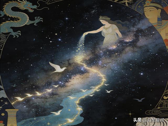 有意思的是,把星空光带视作河的联想,并不止是中国古人专属。天后赫拉的乳汁洒向天空形成的,是古希腊人称作Milky Way的光带。候鸟迁徙时会沿着的这条光带,芬兰人视之为鸟的小径。古埃及人将这光带视作连接人间与冥界的神圣河流。在命名银河这件事上有了微妙契合的,是不同文明、不同地域的人们。这是人类认知世界的共性,面对完全陌生的事物,总会下意识用熟悉的东西做参照。河流作为孕育文明的重要载体,早已深深烙印在人类的集体记忆里,用它来命名银河,是巧合,更是必然。