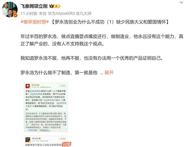 贴脸开大!项立刚炮轰罗永浩:除了直播,你一事无成