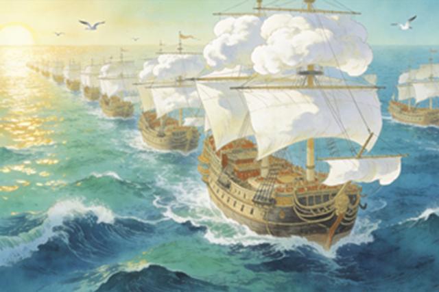 明朝郑和下西洋的船队,那是当时世界上最猛的!船大得像座山,几百艘船一起出海,比后来哥伦布的船队大 100 倍都不止,早近百年就称霸海洋,西方根本比不了。