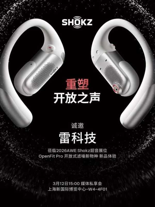 韶音则将在AWE2026带来国内首次亮相的开放式滤噪新物种OpenFit Pro,以及OpenVision、OpenGuide等两款全新 AI 眼镜。
