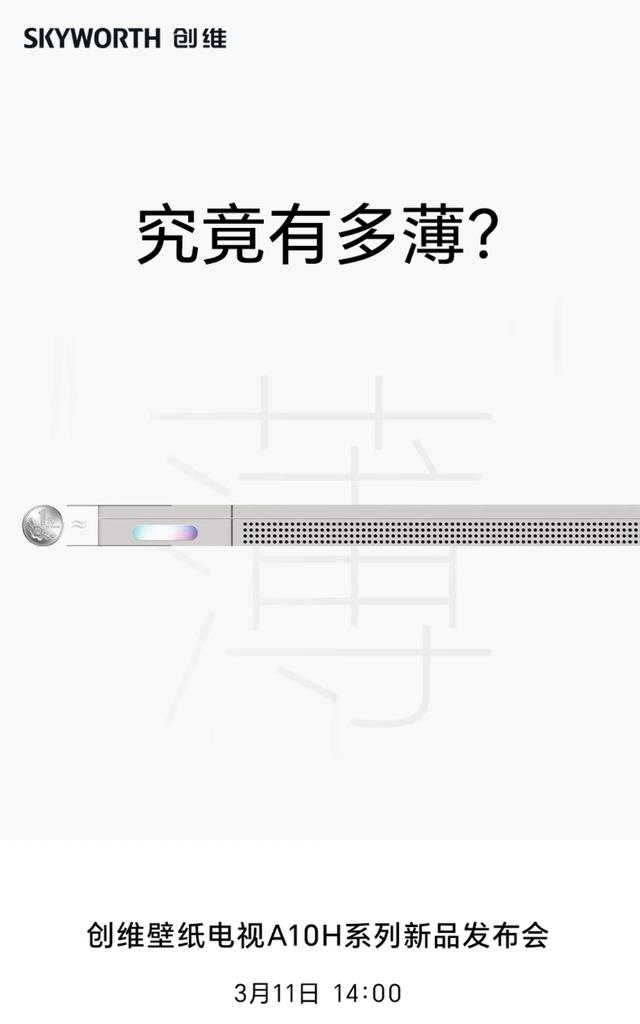 产品细节上,创维壁纸电视A10H系列将主打「壁纸级」贴合设计、超薄机身以及「高定」美学,力图让电视成为高端家居场景的一部分。