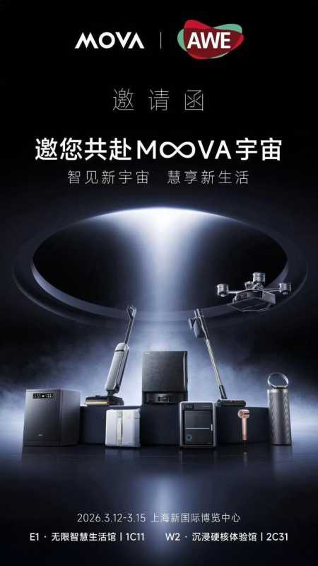 AWE2026,MOVA将携春晚同款、涵盖清洁、庭院、个护、宠物等场景的「全屋智能家居生态」双馆联展。