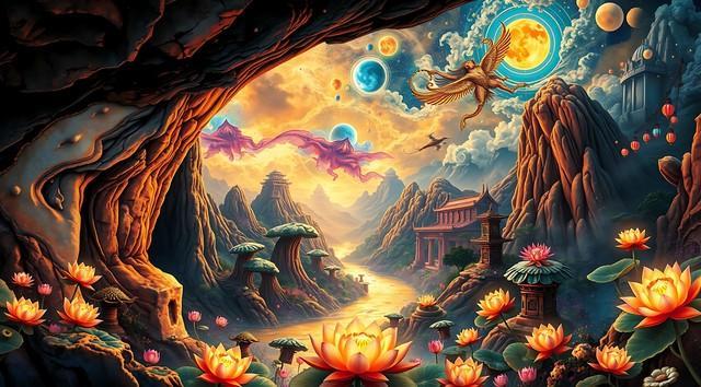 紧随其后的是女娲的故事。传说她“炼五色石以补苍天”,又以泥土造人。从科技猜想的角度看,女娲补天可能对应着一次大气层的修复工程——也许盘古清除有害气体时用力过猛,导致大气过于稀薄,于是女娲通过某种方式“以气补气”,增加大气密度。而那些被她烧炼的“五色石”,可能是含有特殊成分的矿石,在高温下释放气体,修补了大气层中的“空洞”。至于抟土造人,则可以被想象为一场基因工程实验:这位外星科学家以自身的DNA为蓝本,利用地球上的原材料进行基因重组与合成,最终创造出了早期的人类。