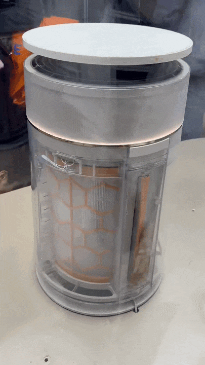 追觅FP10猫毛空气净化器(左)、集毛仓(右)(《消费者报道》记者摄)