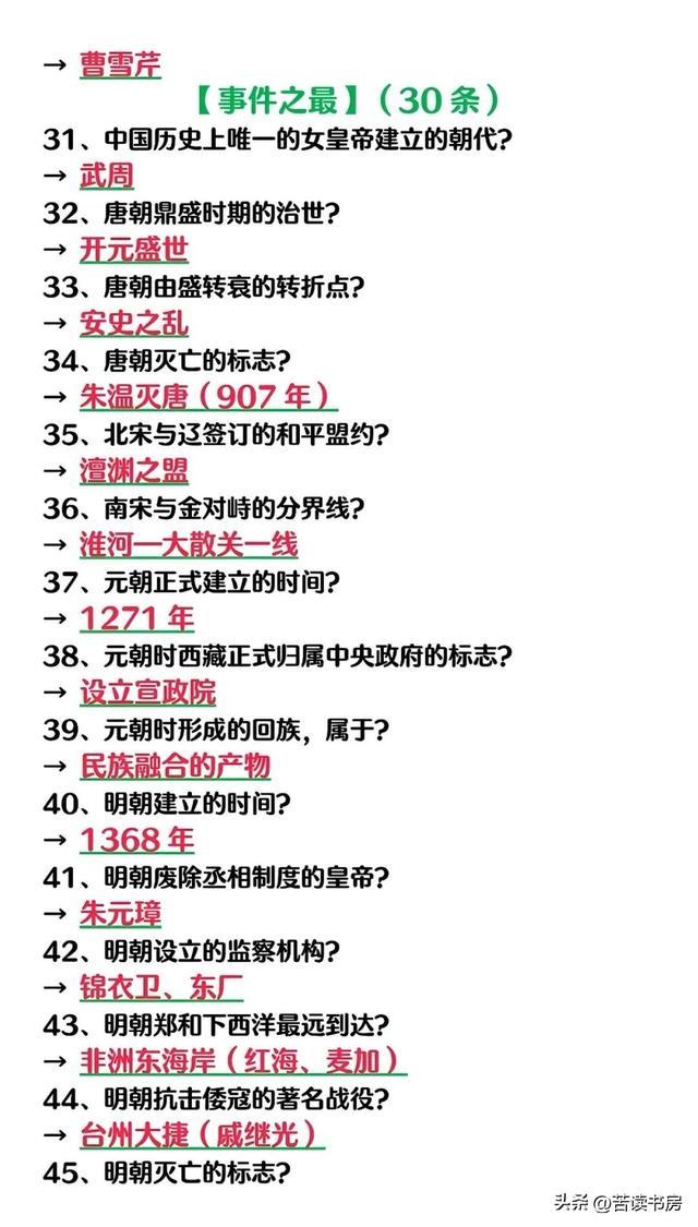 七年级下册历史:关于“之最”的60 条快问快答,记住了就能拿分!