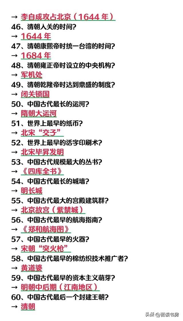 七年级下册历史:关于“之最”的60 条快问快答,记住了就能拿分! 七年级下册历史:关于“之最”的60条快问快答,记住了就能拿分!七年级下册历史学习,自隋唐至明清,朝代更迭频繁,制度创新层出不穷,是考查历史常识、基础概念的高发期。在众多知识点中,“之最”类题目往往是判断 ... 科技之最03-25