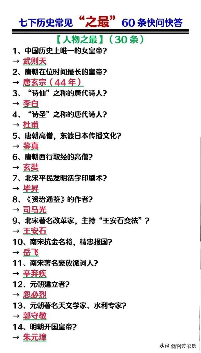 七年级下册历史:关于“之最”的60条快问快答,记住了就能拿分!