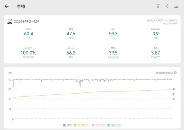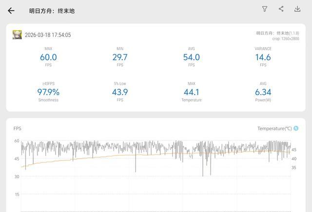 半小时下来,平均帧率稳定在59.3帧左右,整体画面流畅,没有出现明显的卡顿掉帧。机身背部最高温度在42度左右,属于温热的水平,完全可以接受。这个表现说明,天玑8500的性能应对这类主流大型游戏是绰绰有余的。