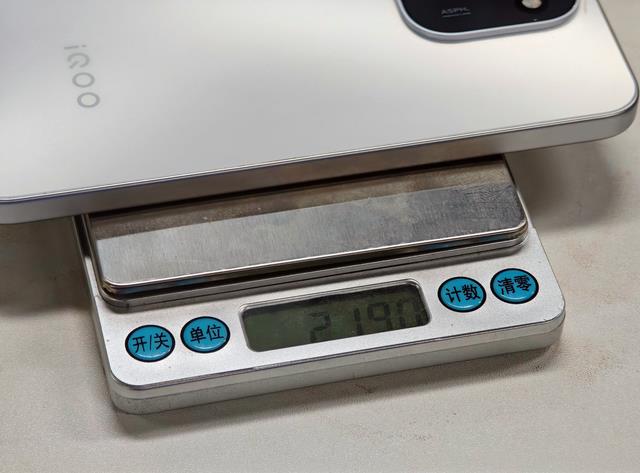 我实测了一下,iQOO Z11厚度约8.35mm,含贴膜重量219g,和市面上流行的超大杯有的一拼。虽然就这样拿在手里没有明显的压手感,但是长时间举着打游戏或者看视频,手腕还是能明显感觉到压力的。