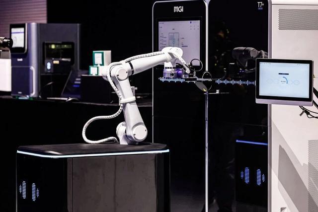 公共卫生领域,新冠大流行时期,华大智造高通量自动化核酸提取设备MGISP-960实现192样本/80分钟的通量,一人可操作三台,为大规模核酸检测提供了关键支撑。