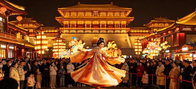 那种人潮汹涌的烟火气,混着唐风灯影的浮动温柔,足以让人忘记时间。2025年的黄金周里,街区一天涌来百万人次,摊位吆喝、小戏连台、网红小姐姐与游客对视一笑,艺术、商业、社交都揉成了唐诗的日常。