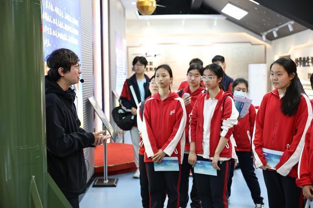 步入科技馆,少年们的目光瞬间被深深吸引,脚步不自觉放缓,满怀崇敬地穿梭于各个展区。每一件展品、每一张老照片、每一段文字记载,都诉说着跨越岁月的坚守与热爱。武汉三中朱宝骏老师以温情又翔实的讲解,带领学子们开启这场精神之旅。从户外展区巍然矗立的长征系列运载火箭模型,到一代代航天人攻坚克难的奋斗历程,朱老师娓娓道来,长征一号到长征五号的飞天之路,细数中国载人航天、月球探测、北斗导航等国之重器的辉煌成就,让学子们亲眼见证中国航天的硬核实力,切身感受祖国科技崛起的磅礴力量。