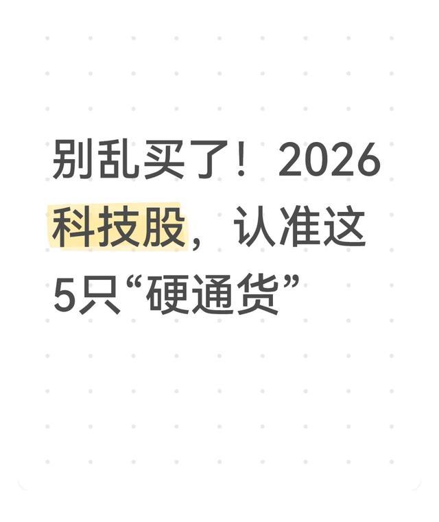 总结一句话:2026年科技股,少即是多,精即是赢。不用看几百只票,不用天天研究概念,认准5只“硬通货”,拿得住、拿得稳,就能吃到科技赛道的核心红利。