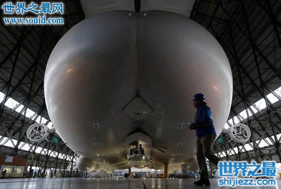 这架飞行器以1937年坠毁的“兴登堡”号飞船为原型,外形像一艘巨型飞艇,长92米,宽43.5米,高26米,设计载重量10吨,是全球最大的飞行器,价值高达2500万英镑(约合人民币2.2亿元)。