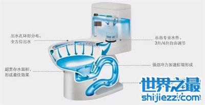2)利用了漩涡和虹吸两种作用:漩涡能产生强大的向心力,将污物迅速卷入漩涡中,又随虹吸的生成排走污物,冲水过程既迅速又彻底;3)存水面积大,气味小 ;4)噪音低。