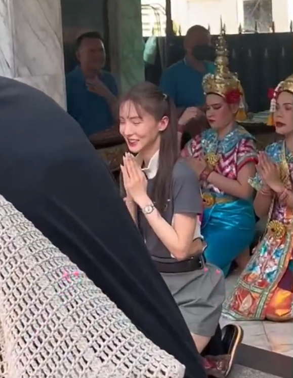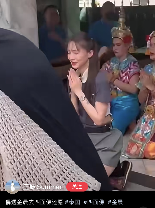 金晨泰国拜四面佛,穿短裙拖鞋引热议,全程嬉皮笑脸毫无诚意