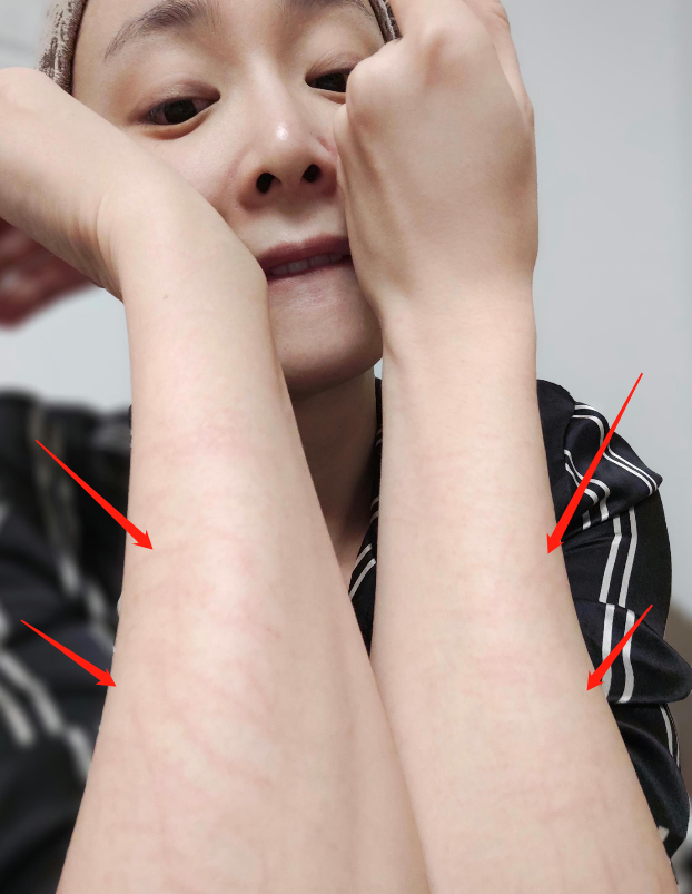 等活动结束脱下礼服后,高叶的两只手臂上全是被亮片外套划伤的红痕,这大概就是变美的“代价”吧!