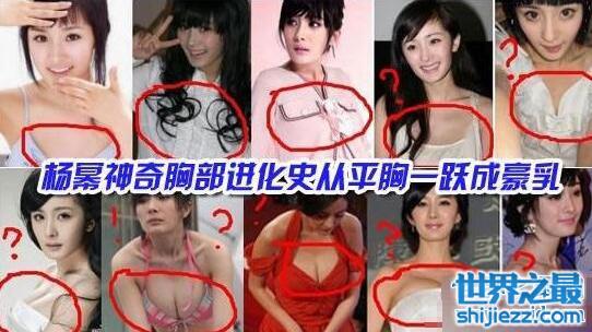 以前曾被曝光过杨幂整容前后照片,可以看出从额头到下巴几乎都整了个遍,而现在看来,杨幂估计不止是动了脸,就连胸都是假的。在被曝光出来的杨幂隆胸前后对比照中,很明显的可以看出以前的杨幂身材平坦,可如今却十分有料。