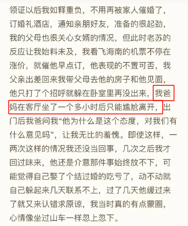 和大她这么多,样子还平凡的苏享茂结婚,也不是自己图钱,而是作为大龄剩女愁嫁,也不看外表,被苏享茂的第一眼“欺骗”了。