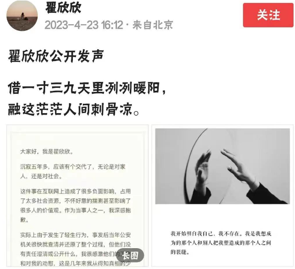 就在4月23日,翟欣欣在某平台发布了万字长文,述说自己的委屈,引起了轩然大波。