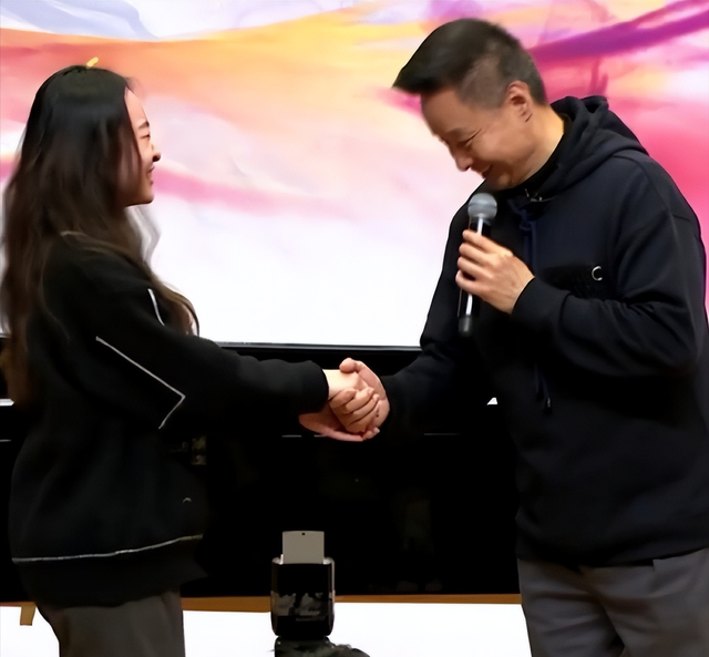 为此一位女学生还特意伸手与阎维文老师手牵手,面对大家火一样的热情,阎维文也没有拒绝对方的要求,伸手回握了女学生的手,而后还在大家的簇拥下一起同框合影。