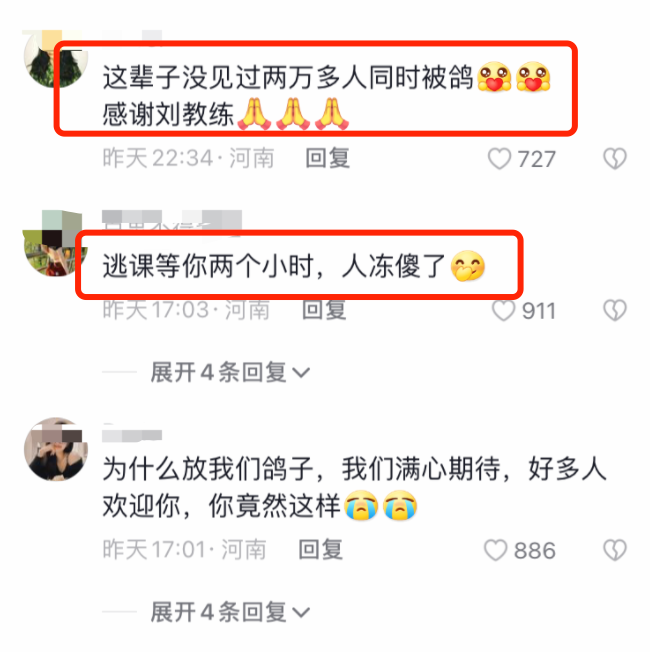 于是刘畊宏放鸽子、耍大牌的行为,学生们相当愤怒,纷纷来到刘畊宏的账号评论区留言。