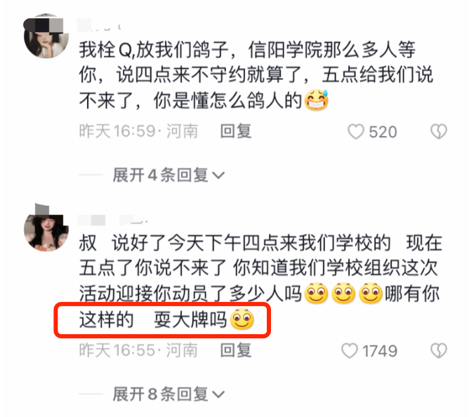 目前,刘畊宏对于自己在信阳学院的失约,没有做出任何回应。而学生们的愤怒,还在持续升级。