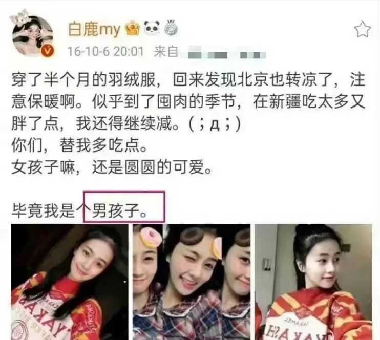 白鹿在不少场合都表示自己是“男人”,表示不喜欢“娘”的自己。