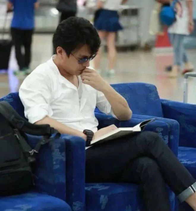 比如靳东在机场候机也要看书,只是看起来有摆拍嫌疑。