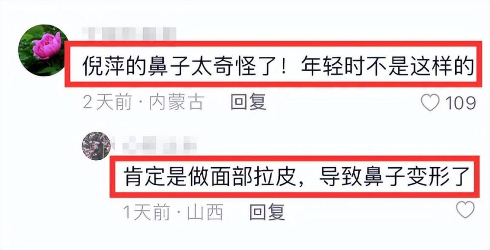 很多人猜测倪萍是不是做了面部拉皮导致鼻子变形,看上去怪怪的,明显和之前不同。