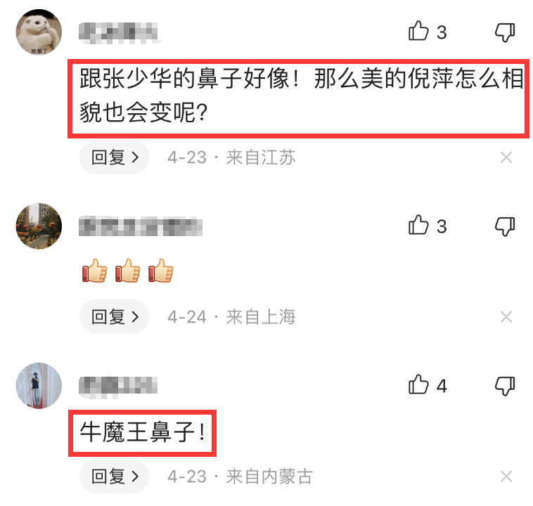 另外,网友的焦点也都对准倪萍的鼻子,可以看到她的鼻孔外翻,完全暴露了出来,有点像“牛魔王”的鼻子,就很抢镜。