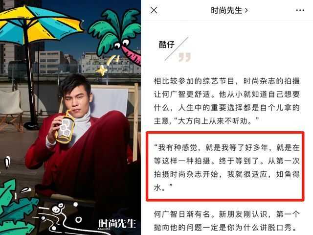 一年前,《时尚先生》找他拍大片,广智还是新手,暗自窃喜终于有机会拍摄时尚杂志了。