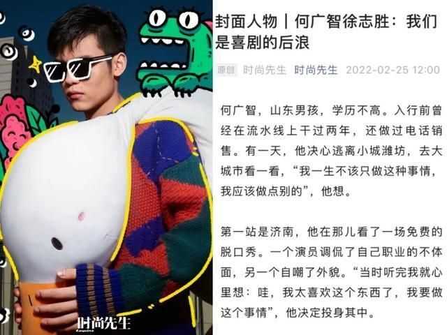从来自山东的乡下小伙儿,到“靠脱口秀养活自己”,再到现在待遇看齐人气小生——何广智的三级跳,像极了现实版“爽文男主”。