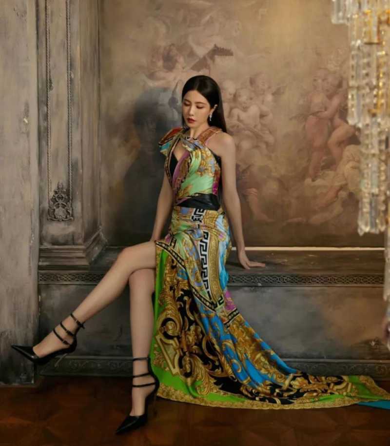 曾黎在美女如云的中戏能当上校花,可见颜值极高。这次她选择的裙子有些异域风情,端庄的曾黎穿上巴洛克斜肩长裙,优雅又大气。