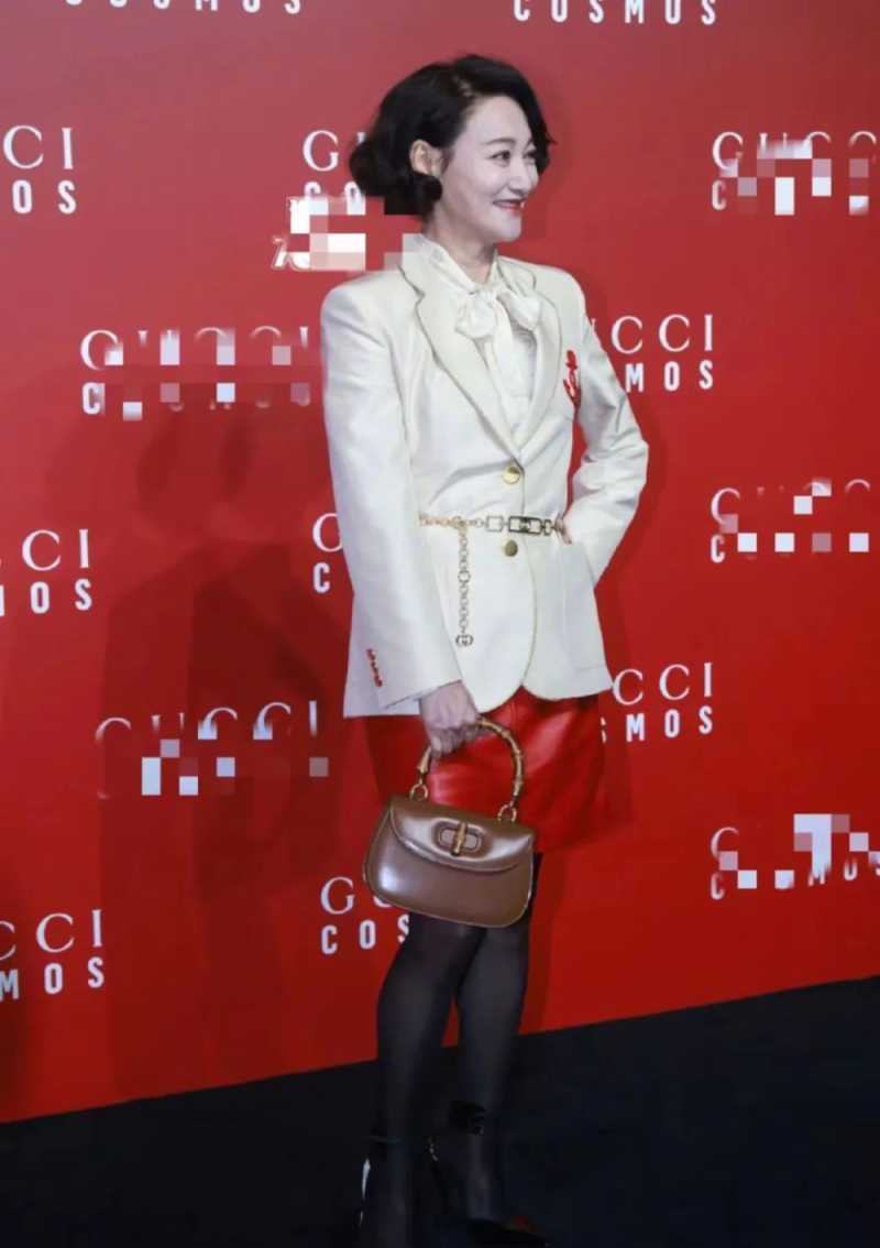 惠英红也是身穿白色西装,她留着一头卷发,苹果肌和法令纹瞩目,脸部僵硬感明显。