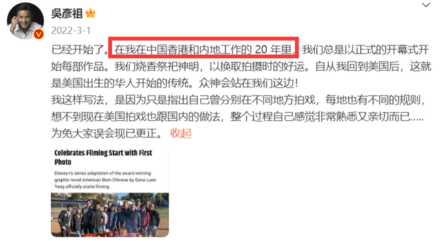 去年吴彦祖在社交平台上发表的言论也曾遭到质疑,引发热议后,吴彦祖删除了这条动态又重新发布了一条,他纠正了自己的错误,有人选择理解他,但也有一部分人质疑他的立场。