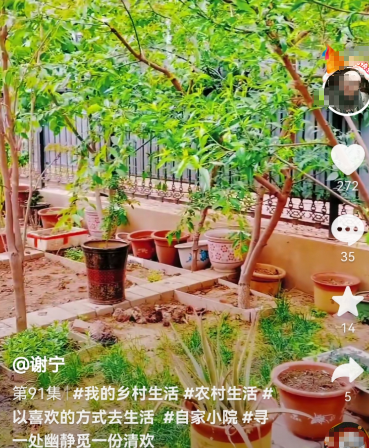 谢宁在自家院子里种了很多蔬菜和水果,经常和网友们分享。