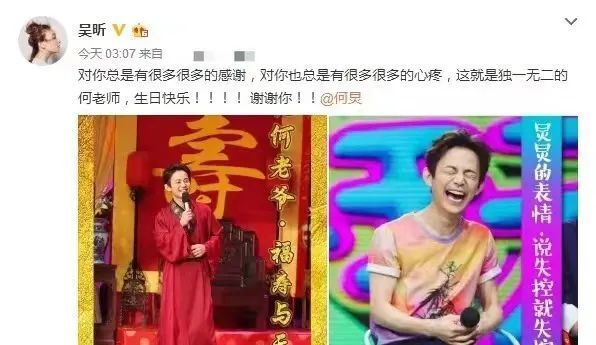 快乐家族的每个成员都为何炅打call,吴昕更是放出了何炅的表情包。