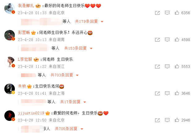 在何炅生日动态评论区占到前排位置的有娜扎、彭昱畅、主持人朱桢、李宏毅、黄明昊等人,甚至羽毛球世界冠军鲍春来也送上了祝福。看来何老师的交友圈很广。