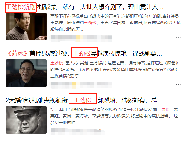 但仔细回看王劲松的演艺生涯就会发现,他参演的作品,有一半都是《战火中的青春》《薄冰》《雷霆战将》《扶摇》《新笑傲江湖》等烂剧。