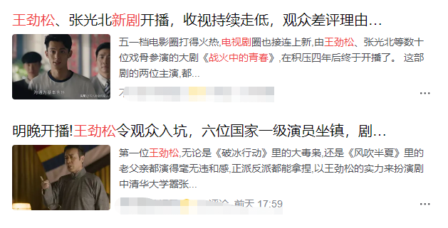 王志飞也是一样,他近3年来的作品都是雷声大雨点小,不及格的比比皆是,他也在《战火中的青春》里演了个配角。
