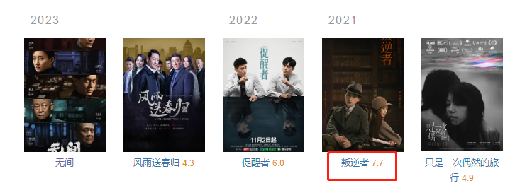 在近3年里,王志文参演的电视剧多在及格线以下,只有一部《叛逆者》拿到7分以上,而他还不是主角。